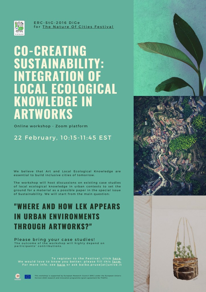 On behalf of Prof. Renata Sõukand, Prof. Andrea Pieroni and workshop organizing team we welcome each and everyone to join a session as part of The Nature of Cities Festival about “Co-Creating Sustainability: Integration of Local Ecological Knowledge in Art Works” on 22nd of February.