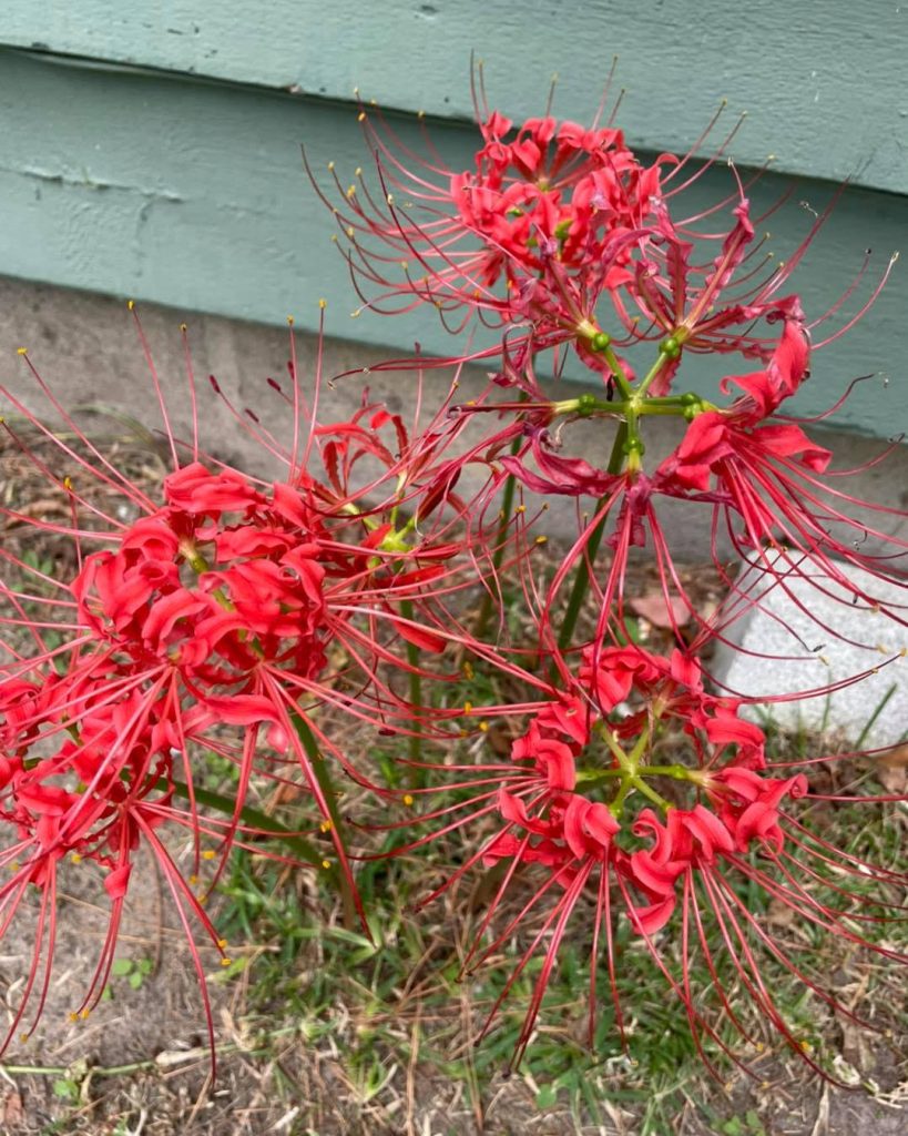 Something that’s recently caught my attention is Lycoris radiata – commonly known as Spider Lily. These beautiful plants with their red inflorescence just seem to pop out of nowhere. Coming from the city I come from – New Bern (NC) – they just seemed to be everywhere, and it seemed to be magic that they would just pop up. Later in life I ended up learning that this plant was brought to the state – to my hometown – by a confederate ship captain who brought it for his niece. She loved plants – I think she was 10 or 12 – and she planted them; and through the decades they ended up naturalising and becoming native to my great city. So, when I think of the childhood home I grew up in, I can see them there. When I think of my grandmother’s home now, I took a picture of them there recently. It’s amazing that through a couple of plants this man brought for his niece are now thriving. But I love roses, I love lilies, I’m a flower man. It generally depends on whatever journey or land I’m in to say, well this is the plant that’s now catching my eye.